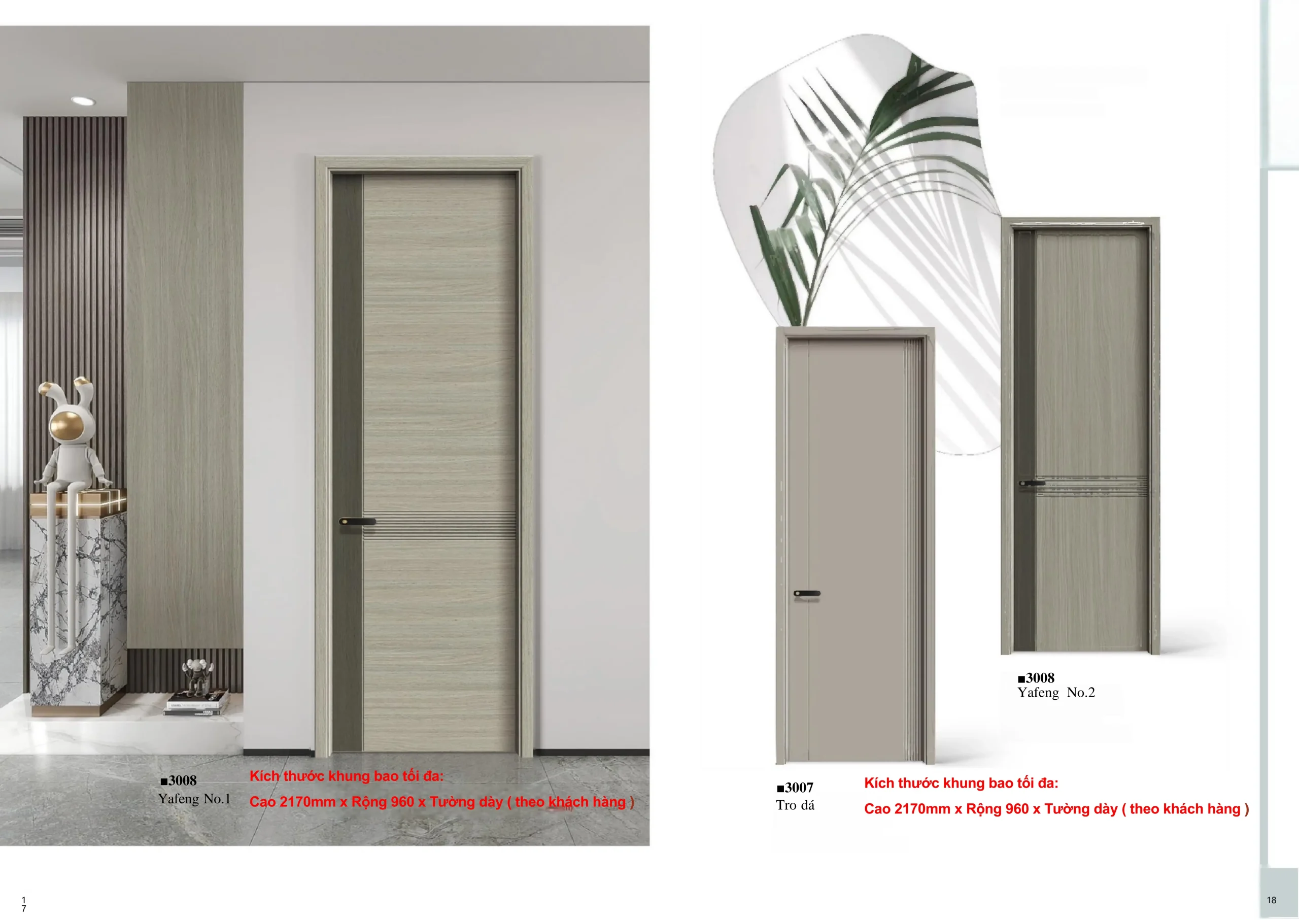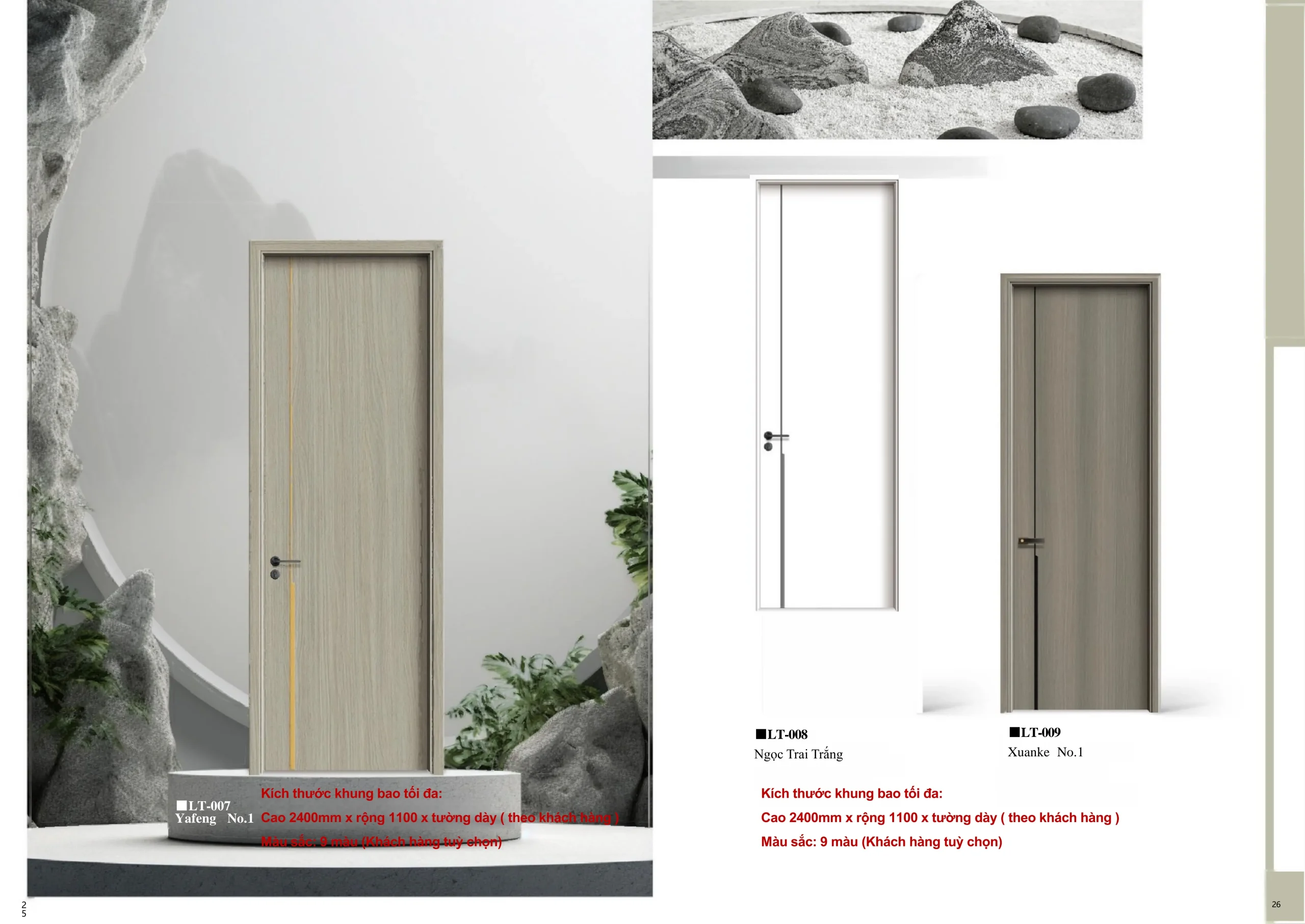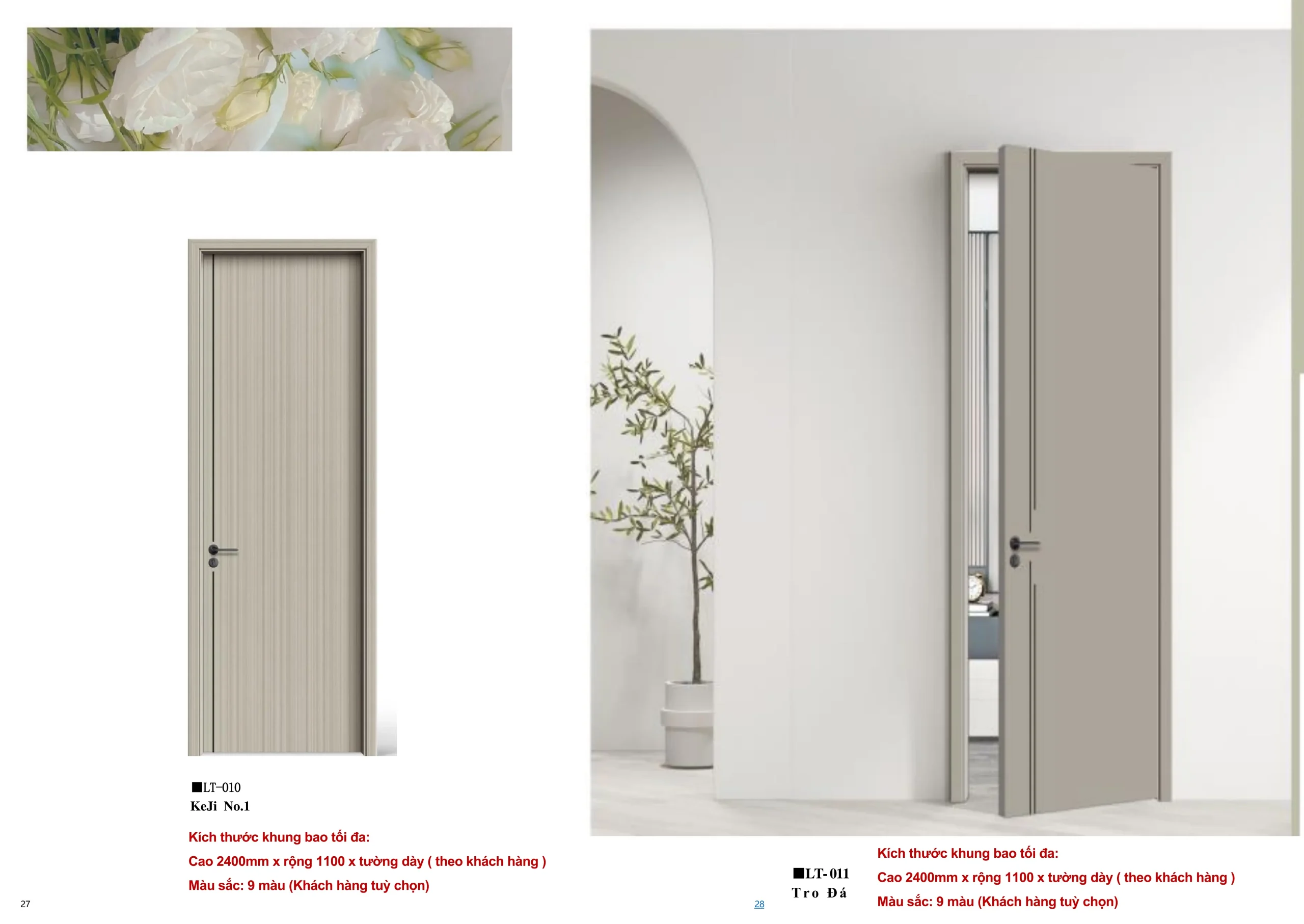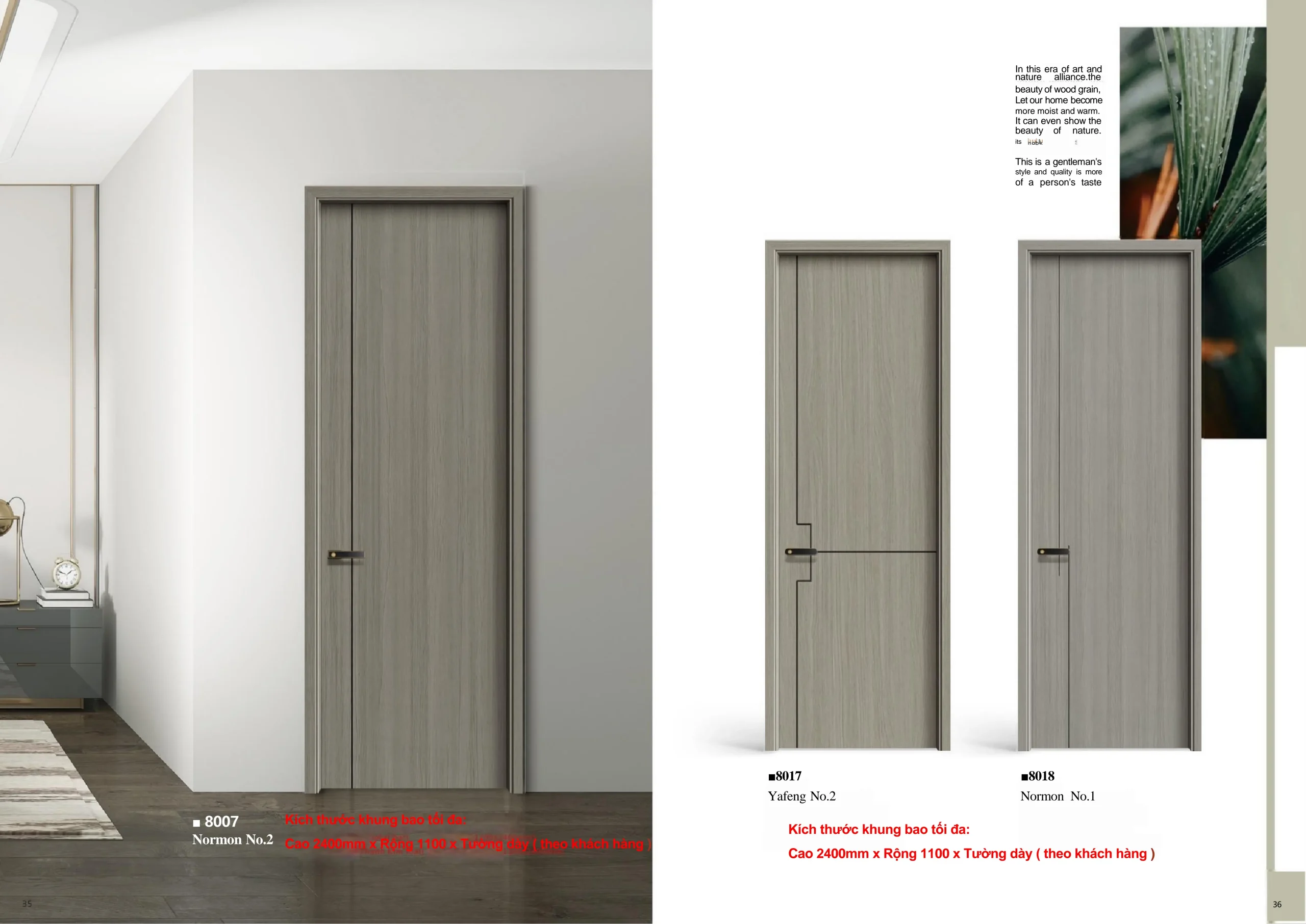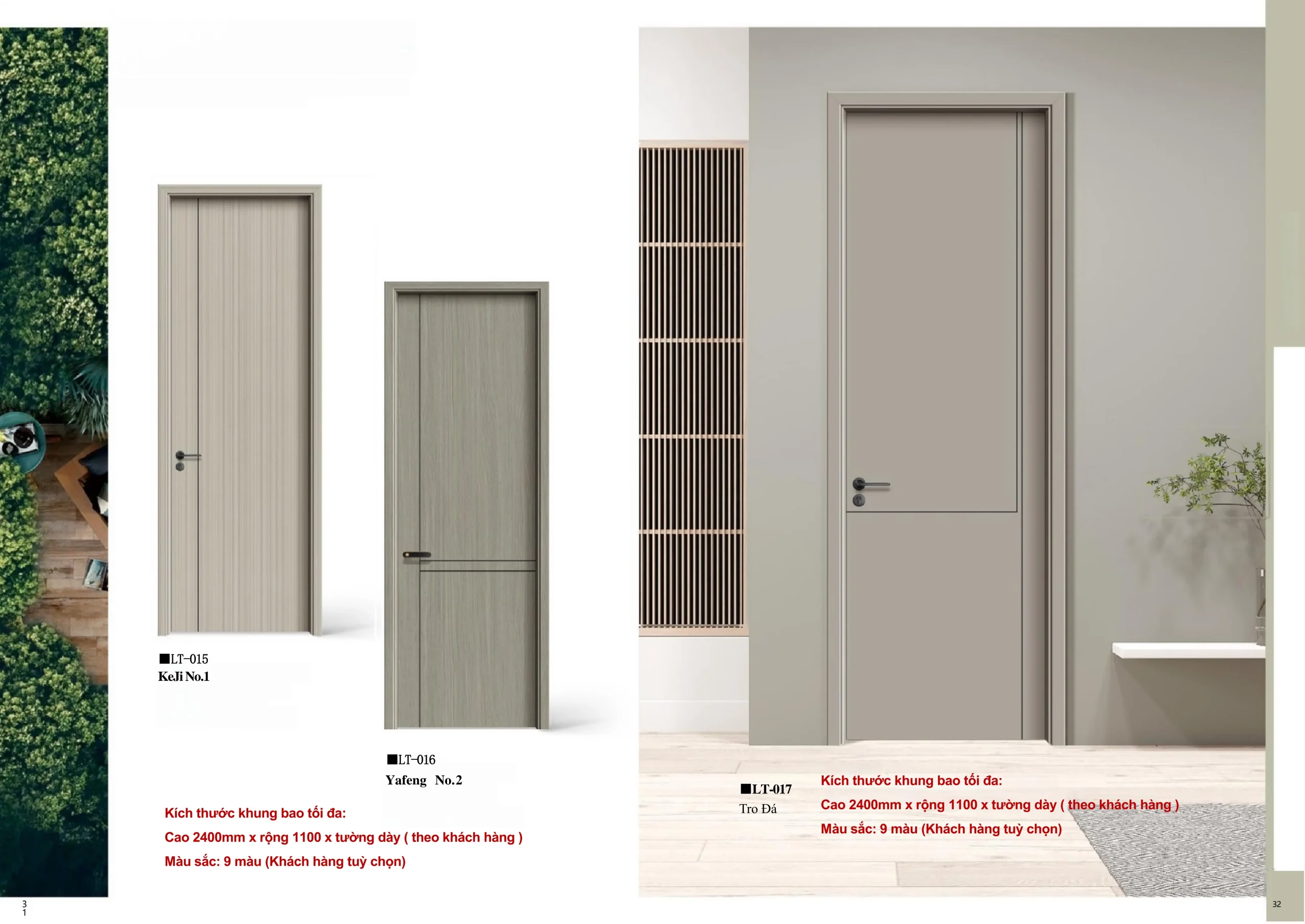 | 1 | Cửa tiêu chuẩn (kích thước tối đa của cánh cửa 2140×910) | bộ (cánh cửa + khung bao ) | 3.100.000 |