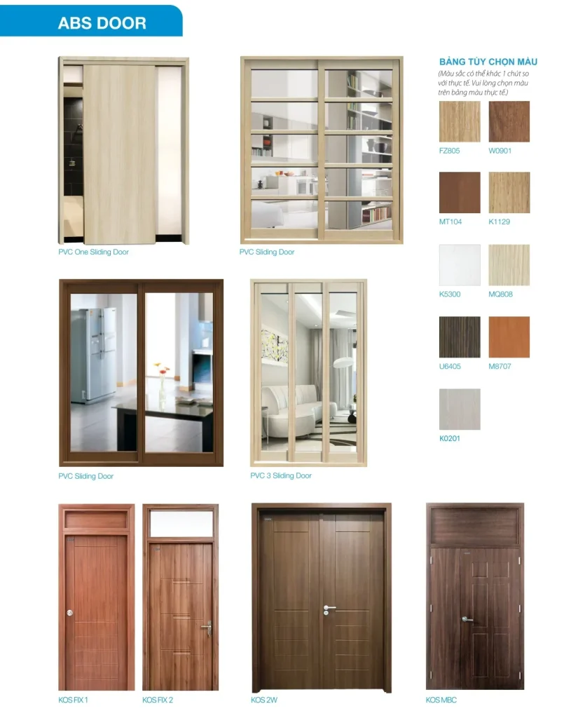 CỬA NHỰA ABS HÀN QUỐC (THƯƠNG HIỆU KOS) - Khung 45 x 110 (± 2). Khung tối đa ôm tường 130mm | Phẳng, CNC | 3.000.000 |