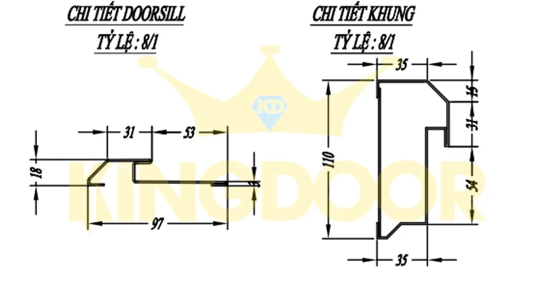 + Tiết diện khuôn cửa là 110×50(mm)