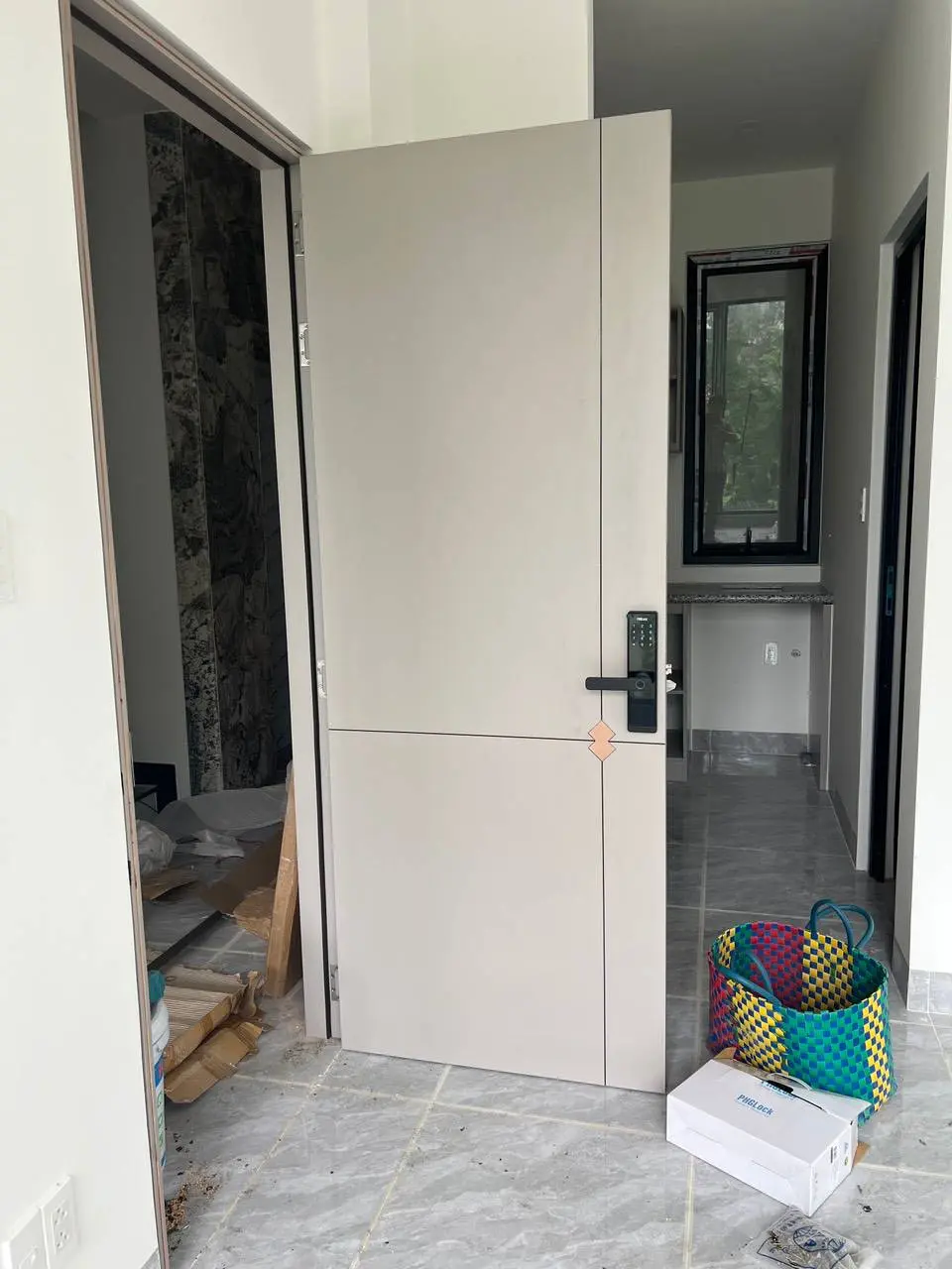 Cửa gỗ carbon với tông màu sang trọng giả vân gỗ như xám và trắng kết hợp nhiều mẫu mã hiện đại.