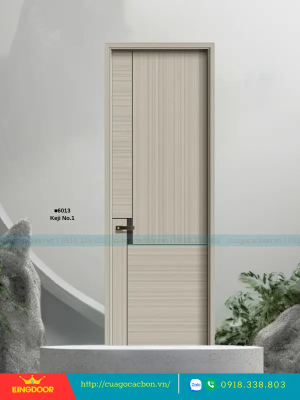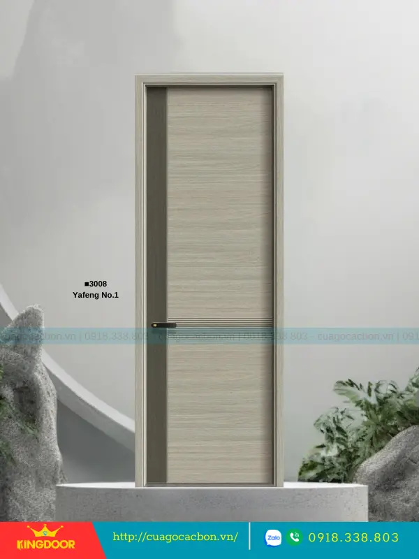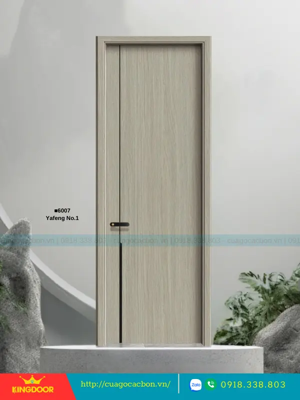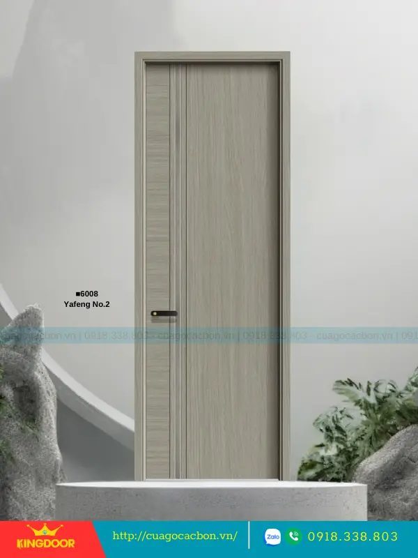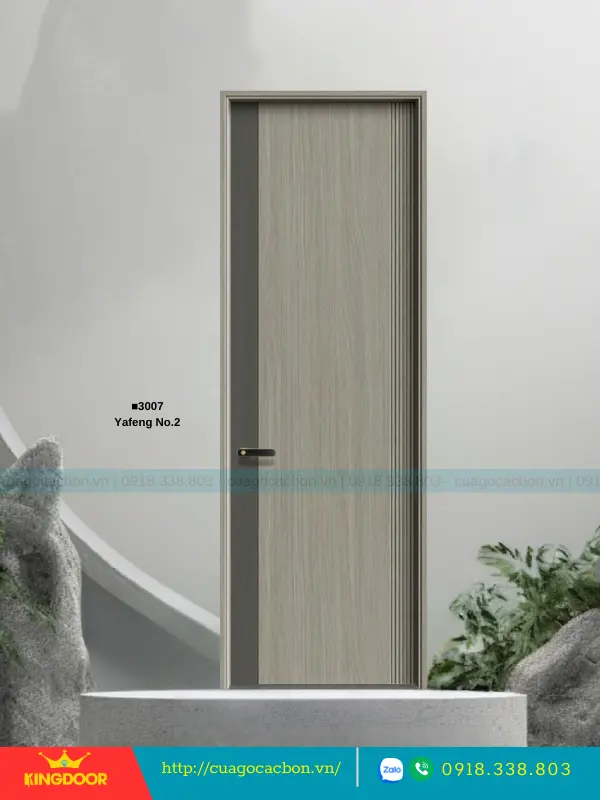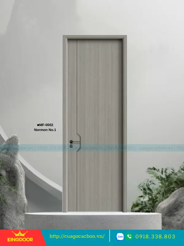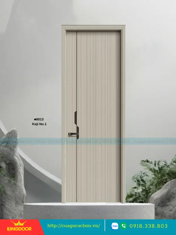 - Cánh cửa: Được cấu tạo từ khung xương gỗ cao su tự nhiên ghép lại, cánh cửa có độ dày 40mm. Bề mặt ngoài là hai tấm nhựa carbon cao cấp được phủ lớp melamine vân gỗ, tạo nên vẻ đẹp tự nhiên và sang trọng.