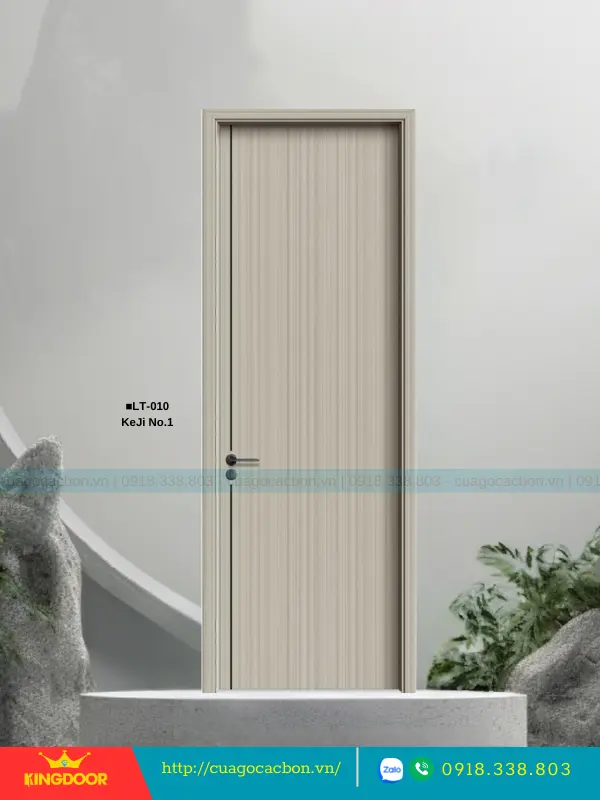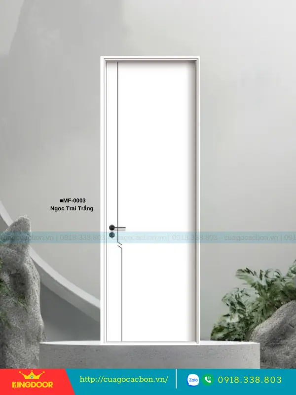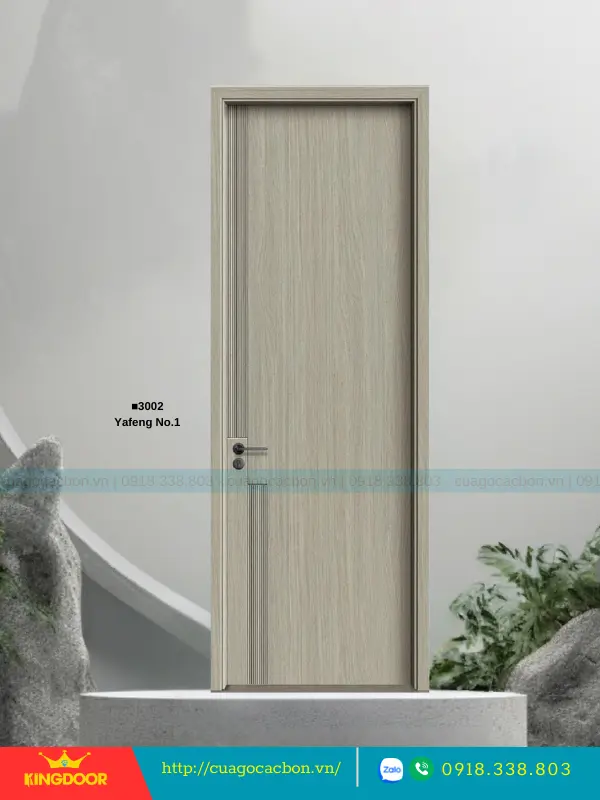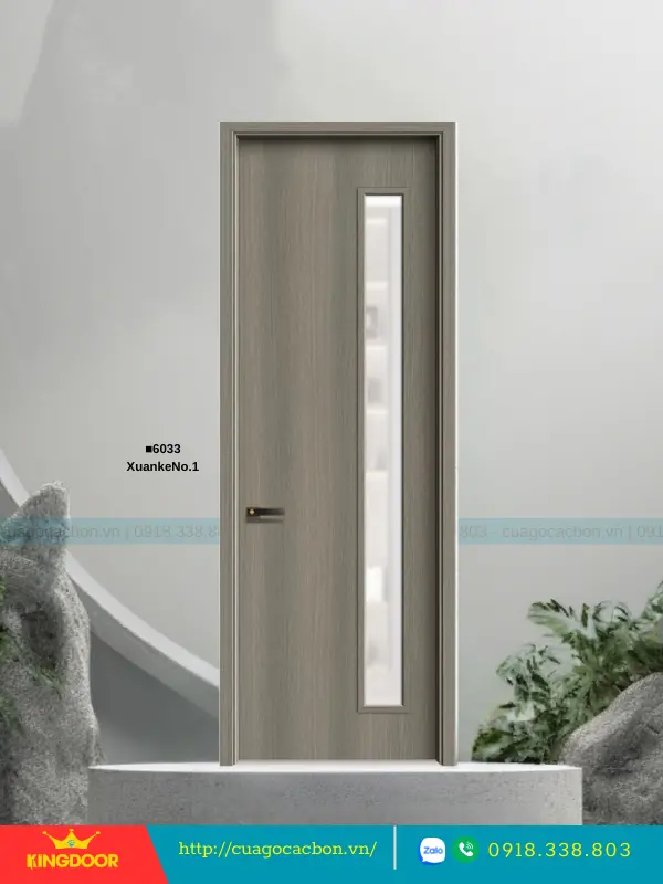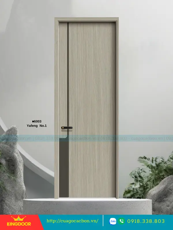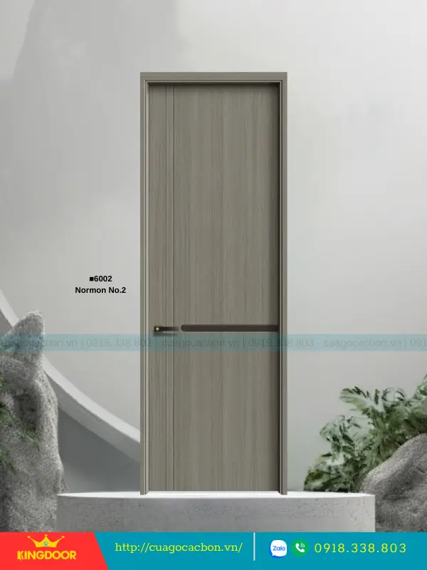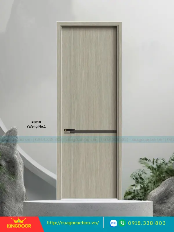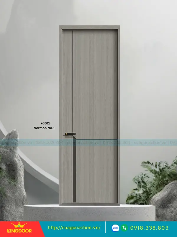 - Cánh cửa: Được cấu tạo từ khung xương gỗ cao su tự nhiên ghép lại, cánh cửa có độ dày 40mm. Bề mặt ngoài là hai tấm nhựa carbon cao cấp được phủ lớp melamine vân gỗ, tạo nên vẻ đẹp tự nhiên và sang trọng.