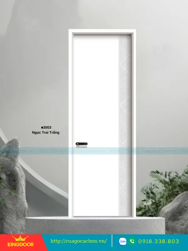 - Khung bao: Khung bao được lựa chọn giữa gỗ cao su ghép hoặc Composite. Khung có độ dày 35×100 (hoặc tùy chỉnh theo yêu cầu). Bề mặt khung cũng được phủ tấm Carbon và Melamine, mang lại sự đồng bộ và bền bỉ. Nẹp chỉ L có thể điều chỉnh theo độ dày của tường.