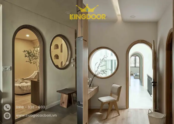 Dạng vòm giúp không gian trở nên thanh thoát và mềm mại hơn so với cửa thông thường. Đây là lựa chọn hoàn hảo cho những ai yêu thích sự tinh tế trong thiết kế nội thất.